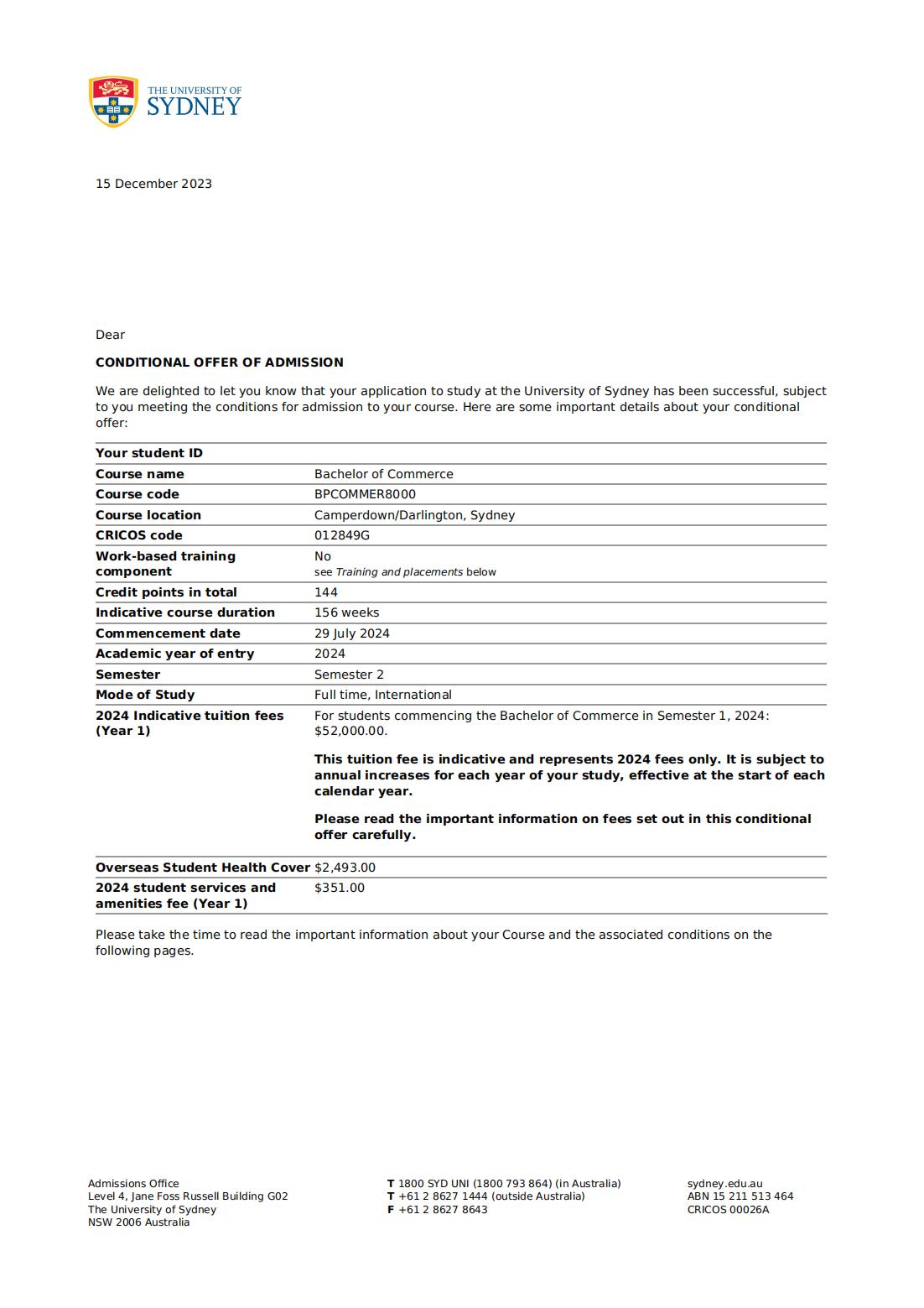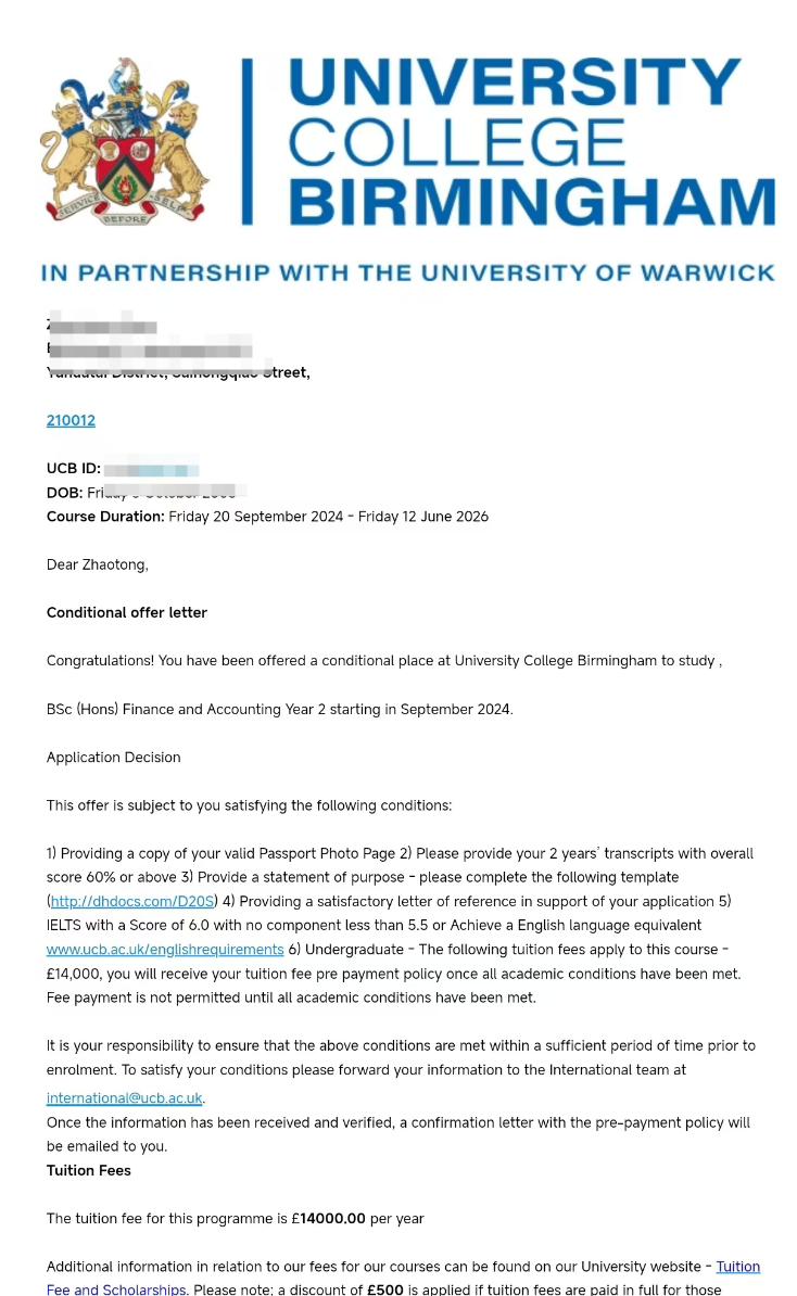 (2)国内阶段培养费(含住宿费、军训费、体检费):商科类、教育类60000元/年,工科类、艺术类68000元/年;