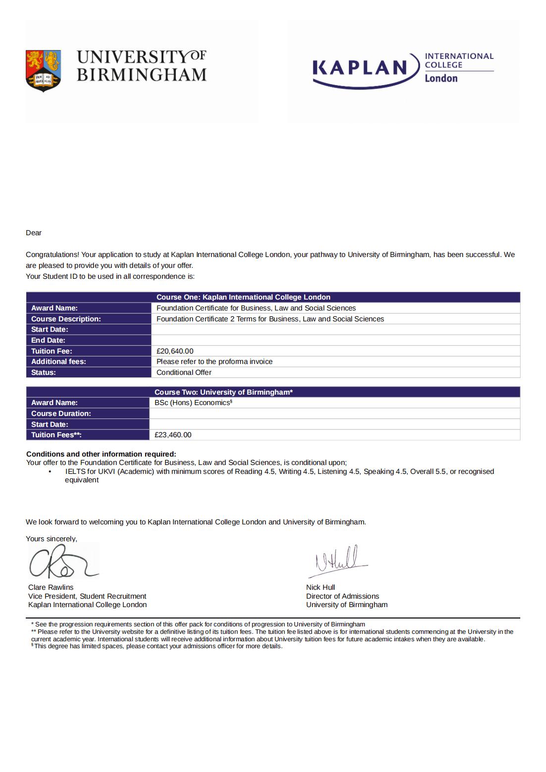 (4)(国内)国际高中或普通高中国际部或(海外)高中毕业的,A LEVEL 等成绩需符合海外合作大学学士学位最低申请条件。