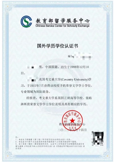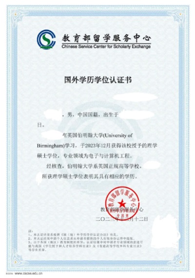- 学生在国内及海外进行双注册;每年国内和海外审核双监督;英方统一考核标准,形成性评价方式;官方合作海外院校,毕业生所获海外学位证书均可根据中国(教育部)留学服务中心相关政策要求申请学历学位认证。