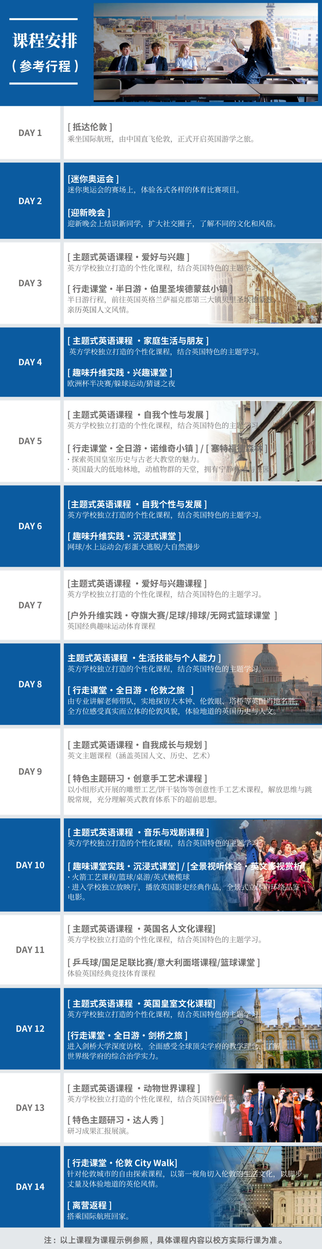 所有学员将参与由英方制定的入营分班测验。(该测验旨在为游学生提供最好的游学体验,测验结果不会使具体课程内容有所偏重)