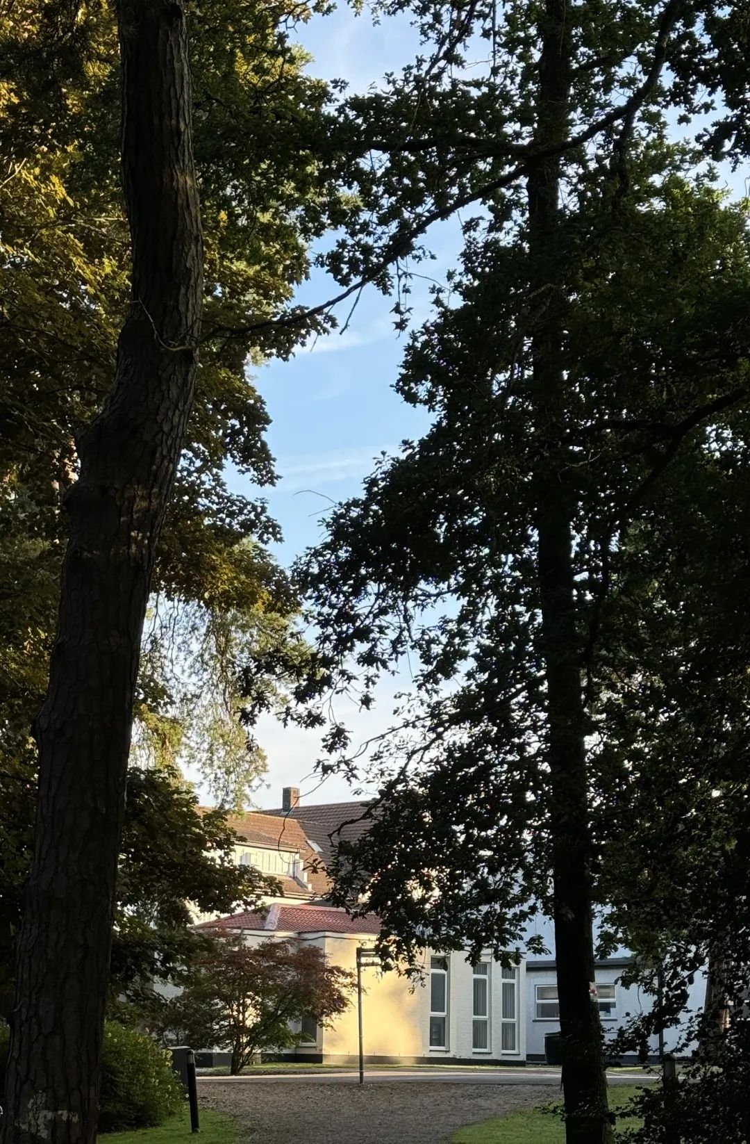 英国学校的绿化系统普遍都是优质的,而在唐屋,绿意与学术共生的意识好像更为强烈,有一丛乔木森林立于校园,在密林掩映之下,就是夏校学生的住宿场所以及通往教学主楼的清幽小径。学生在清晨的日出薄光中醒来,森林成为了日光自然的滤网,把最柔和的光线送到了窗前。