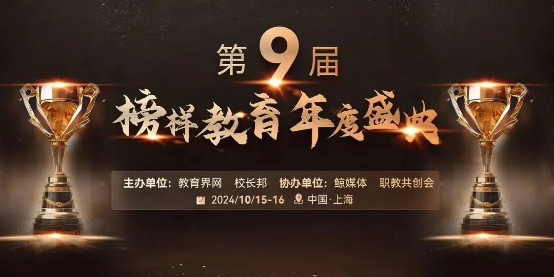 第九届榜样教育年度盛典在10月15-16日于上海隆重举行,此次大会以“云帆·沧海,开启AI教育新纪元”为主题,由中国民办教育协会、上海市民办教育协会指导,上海市成人教育协会、上海市终身教育研究会、校长邦、震旦教育集团联手打造。