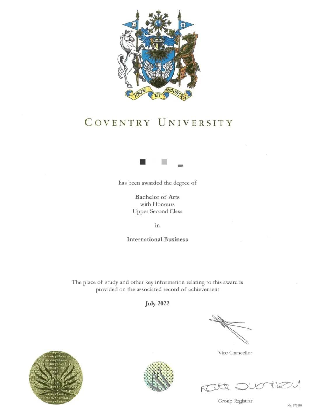 学生所获得的学士学位及硕士学位与国外大学本土学生所获学位无差别。教育部按照境外文凭认证注册制度给予学士学位及硕士学位认证,学历学位完整。