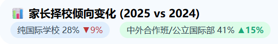 业内预测,未来两年,“轻量化国际教育”将成为主流。15万左右、双文凭、离家近的模式会进一步蚕食纯国际学校份额。当然,顶部的深国交、上中国际等依然坚挺,但腰部学校若只降价不创新,将面临更大危机。